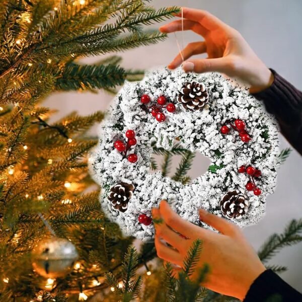 - Snow Flocked Christmas Wreath 12” Artificial Winter Front Door Wreath
