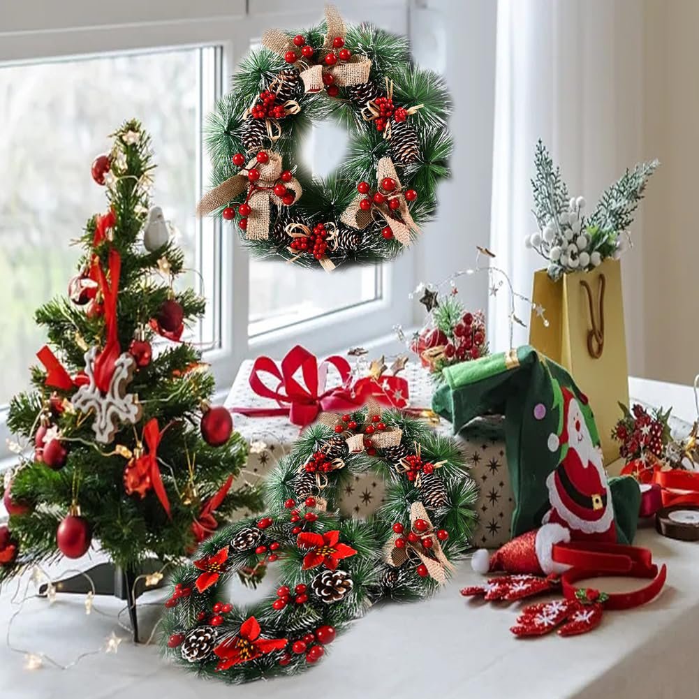 - Christmas Decoration: Hand-made colorful berry clusters with pine cones on the solid plant garland base will bring you a happy Christmas atmosphere and make your front door stand out. Welcome friends and family with this new colorful front door wreath.